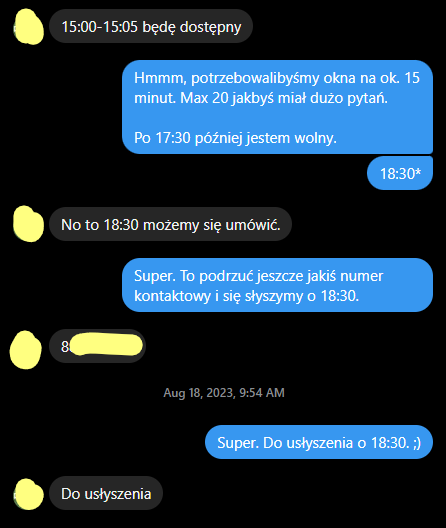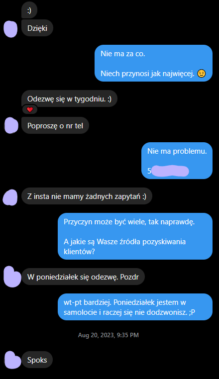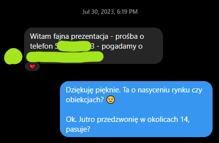 12 minut od wiadomości informującej mnie o wynikach posta wpada kolejna rozmowa sprzedażowa!